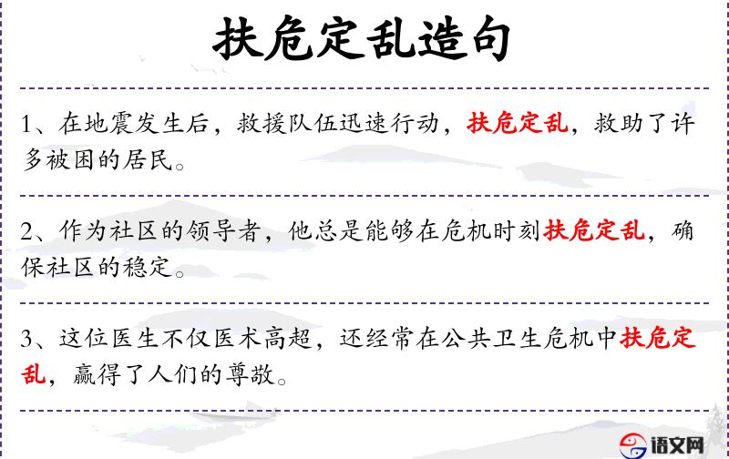 - 扶危定乱:帮助处于危险中的人,稳定混乱的局面。