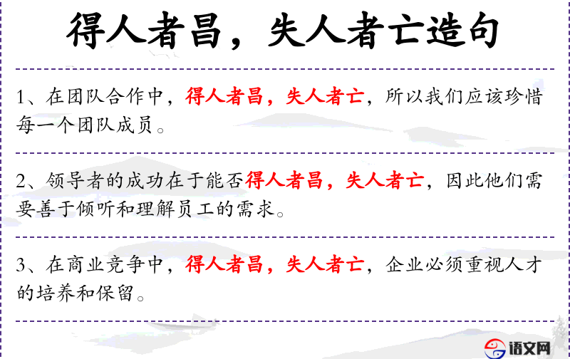 - 插入语:得人者昌,失人者亡