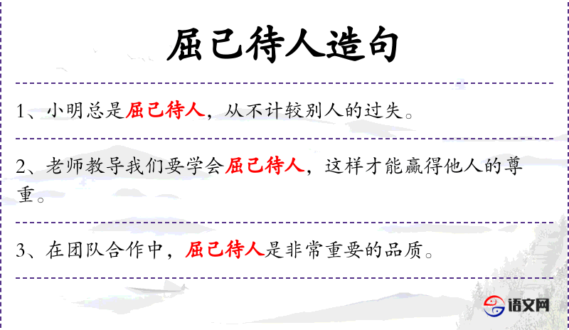 - 屈己待人:指在团队合作中,个人愿意放下自己的利益,尊重和考虑他人的感受和需求。
