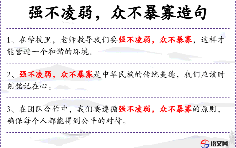- “强不凌弱,众不暴寡”作为中华民族的传统美德,我们应当时刻牢记。