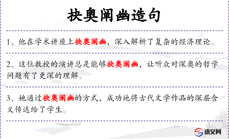 - 抉奥阐幽:这是一个成语,意为深入挖掘和阐明深奥的道理。