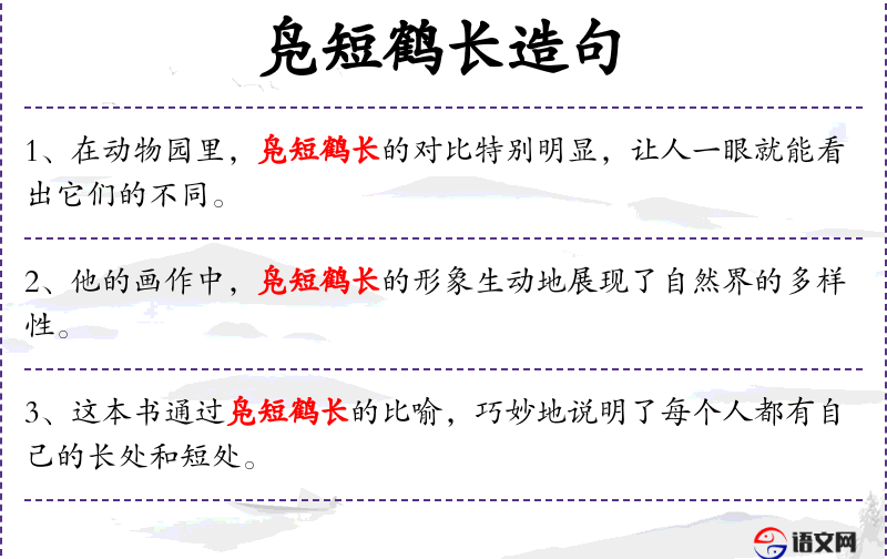 “凫短鹤长”是一个成语,源自**传统文化,比喻事物各有长短,各有其独特之处。这个成语的使用体现了对传统文化的尊重和运用。