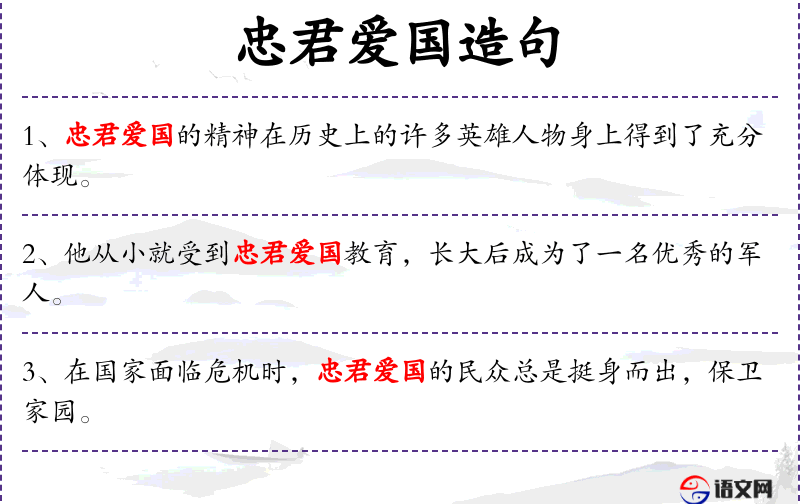 句子:“在国家面临危机时,忠君爱国的民众总是挺身而出,保卫家园。”