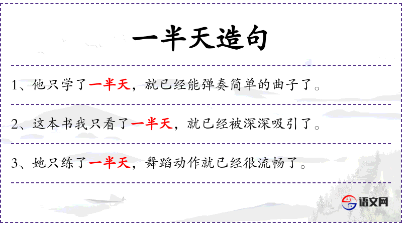 1. 【一半天】 - 一天半天。泛指较短的时间。