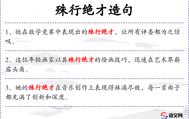 3. 【殊行绝才】 - 殊:特殊;绝:少有的。指才能和德行都很高超,世上少有。