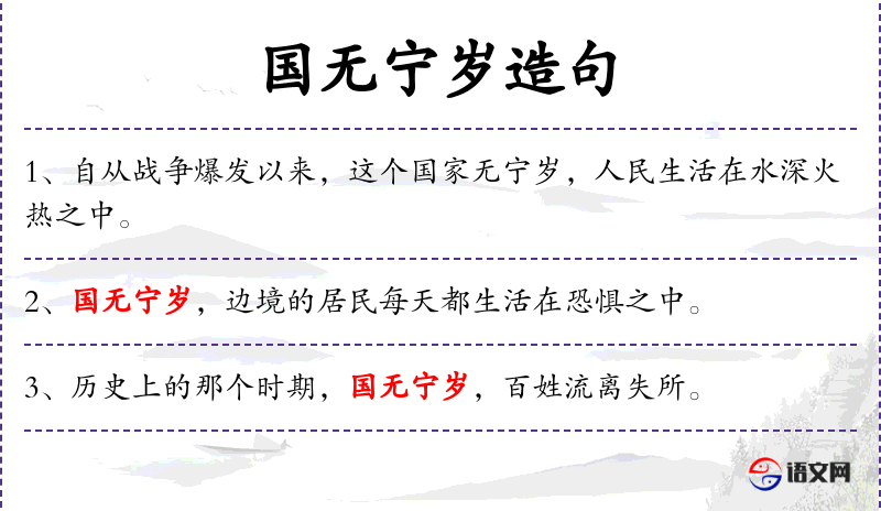 - 无宁岁:意为没有安宁的年份,形容国家长期处于动荡不安的状态。