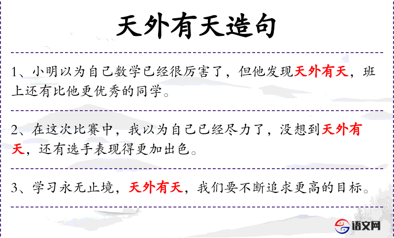 - 天外有天:成语,比喻高手之外还有更高手。