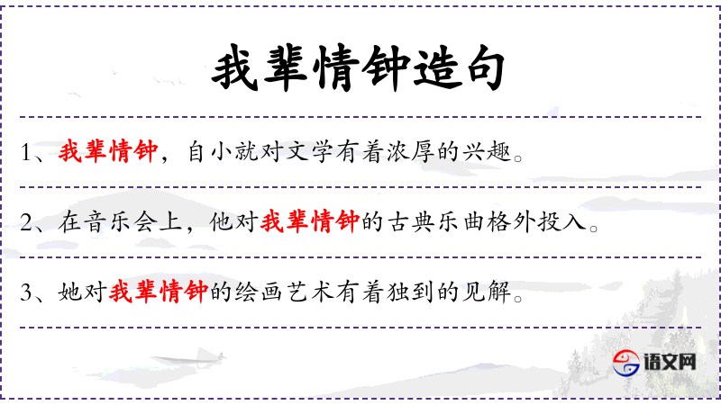 句子:“在音乐会上,他对我辈情钟的古典乐曲格外投入。”