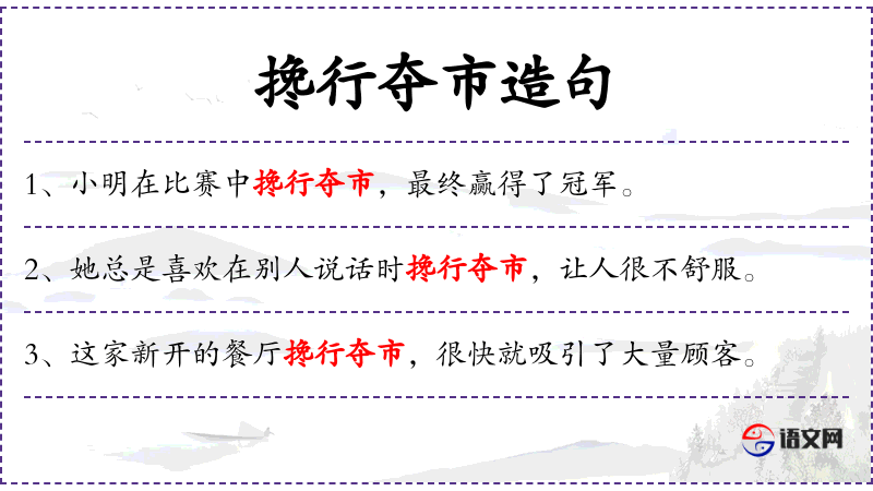 - 成语:“搀行夺市”是一个成语,源自古代市场交易,意为在别人前面抢先行动。