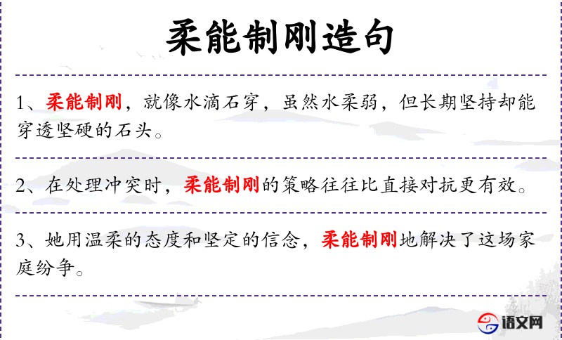 5. 【柔能制刚】 指以柔弱的手段能够制服刚强的人。亦作“柔能制刚,弱能制强。”
