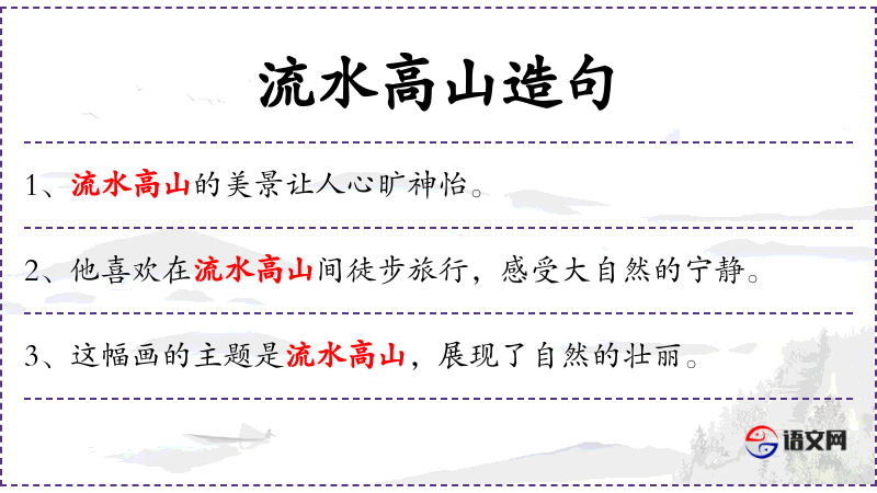 4. 【流水高山】 - 比喻知己或知音。也比喻乐曲高妙。