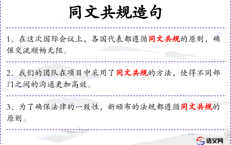 - “同文共规”反映了国际交流中对语言和规则统一性的重视。