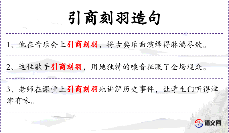 - 引商刻羽:这个成语源自**古代音乐理论,商和羽是古代五音中的两个音。