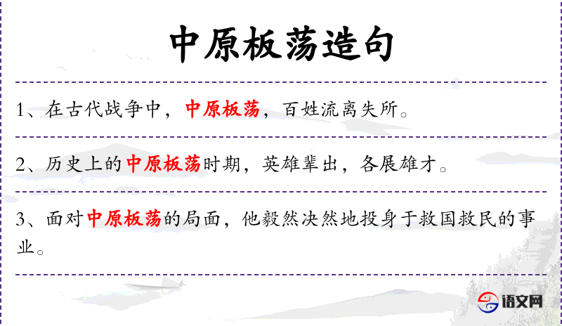 - 中原板荡:指中原地区动荡不安的局面。