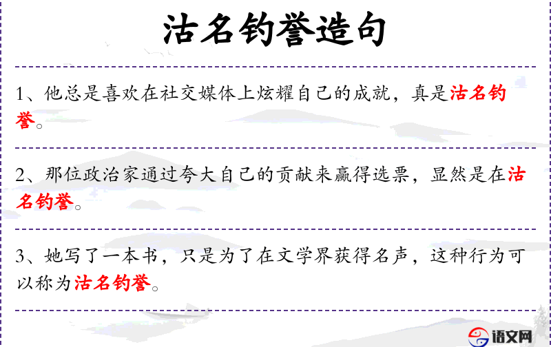 1. 【沽名钓誉】 沽:买;钓:用饵引鱼上钩,比喻骗取。用某种不正当的手段捞取名誉。