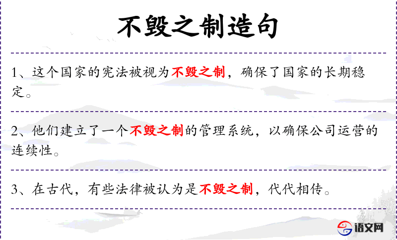 - 不毁之制:形容词短语,意为不可摧毁或破坏的制度。