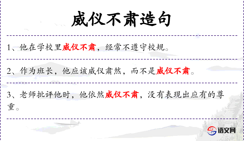 - 定语:威仪不肃