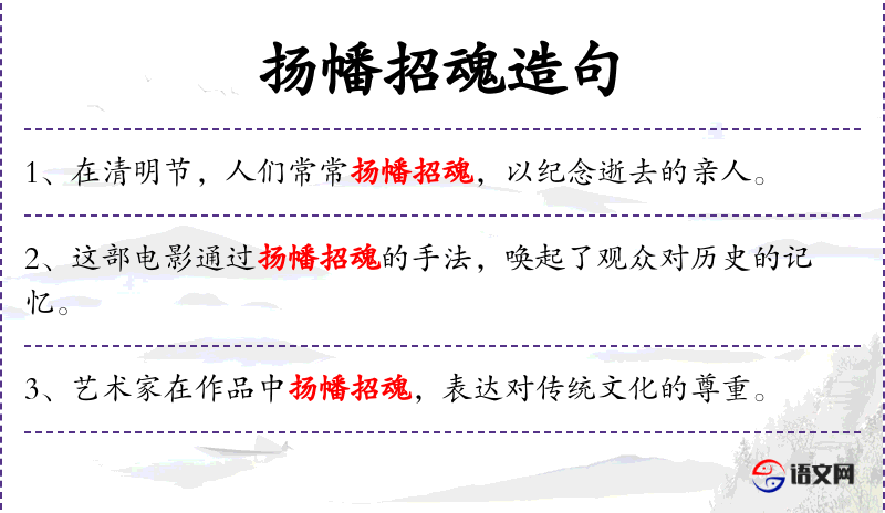 - 扬帆招魂:这个成语源自**传统文化,比喻通过某种手段唤起人们的记忆或情感。