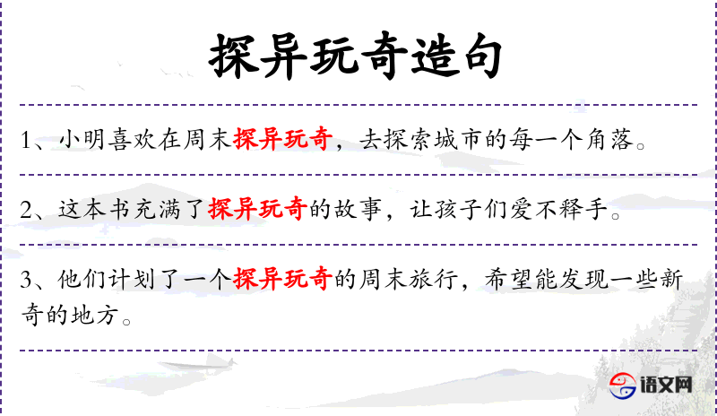 - 探异玩奇:探索新奇事物,寻求不同寻常的体验。