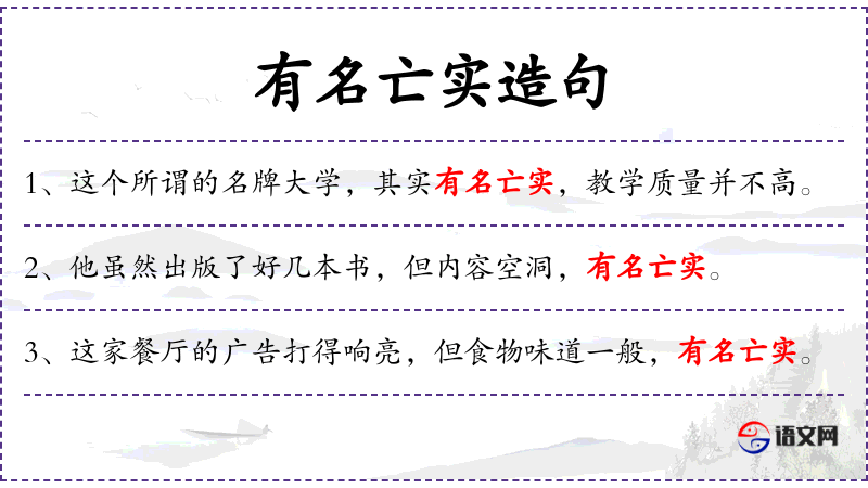 2. 【有名亡实】 - 光有空名,实际上并不是那样。同“有名无实”。