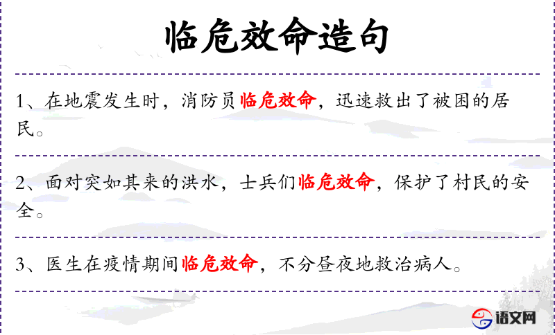 - 临危效命:在危急时刻挺身而出,尽职尽责。