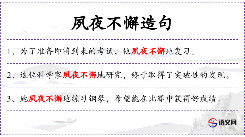 - “夙夜不懈”体现了**文化中对勤奋和坚持的重视。
