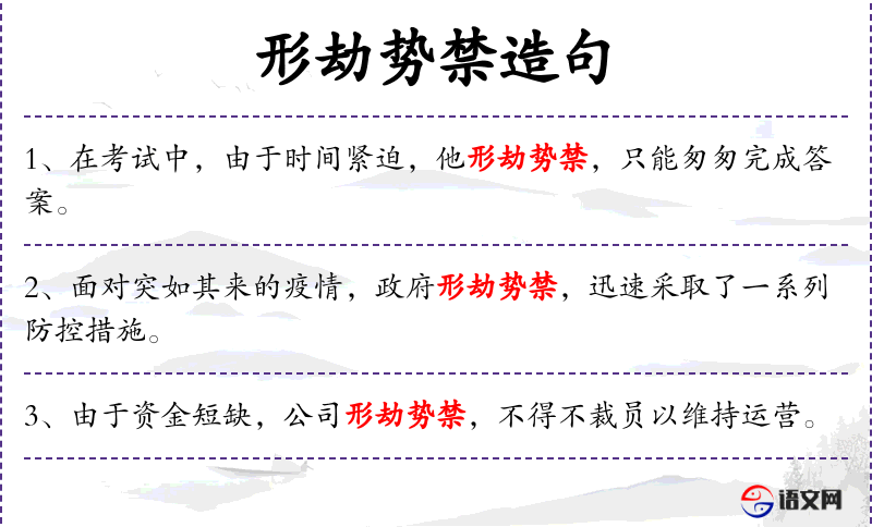 - 形劫势禁:成语,形容形势非常不利,难以摆脱困境。