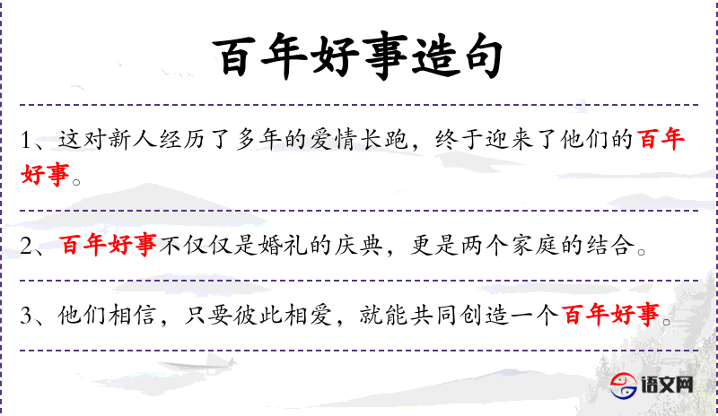 1. 【百年好事】 指婚姻喜事。