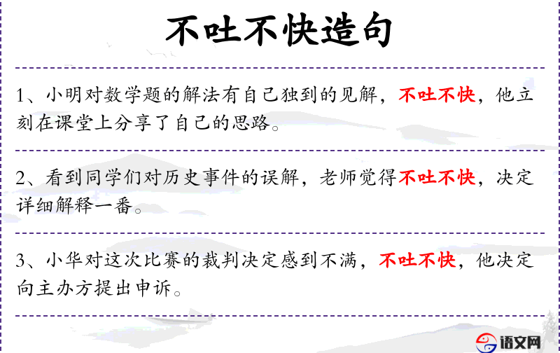 - 不吐不快:形容有话要说,不说不舒服。