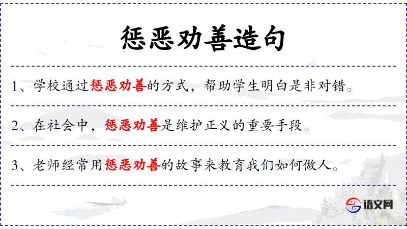 - 成语:“惩恶劝善”是**传统文化中的一个重要成语,体现了儒家思想中的道德规范。