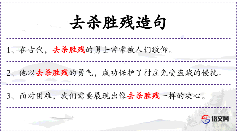 - 去杀胜残:这个词组可能指的是一种克服困难、战胜逆境的精神。