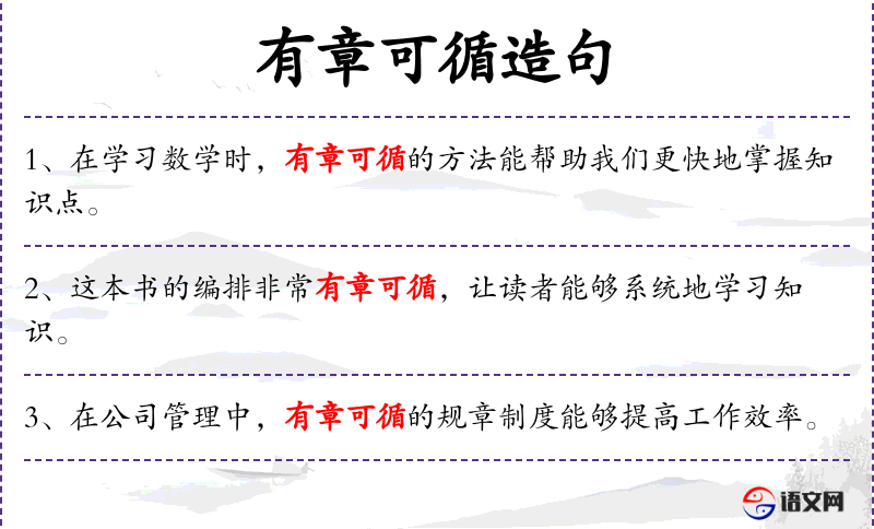 3. 【有章可循】 - 章:章程、章法;循:遵守、依照。有章法可以依照