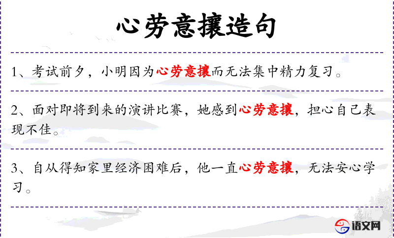 - 心劳意攘:形容内心疲惫、焦虑不安。