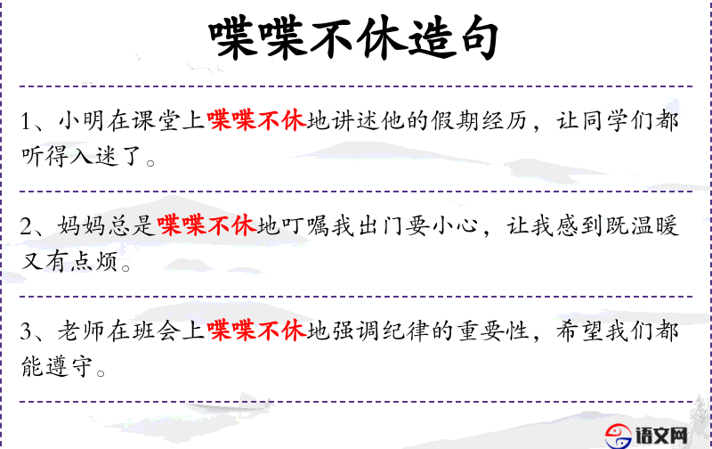 - 英文:使用“incessantly”来表达“喋喋不休”,强调持续不断的说话行为。