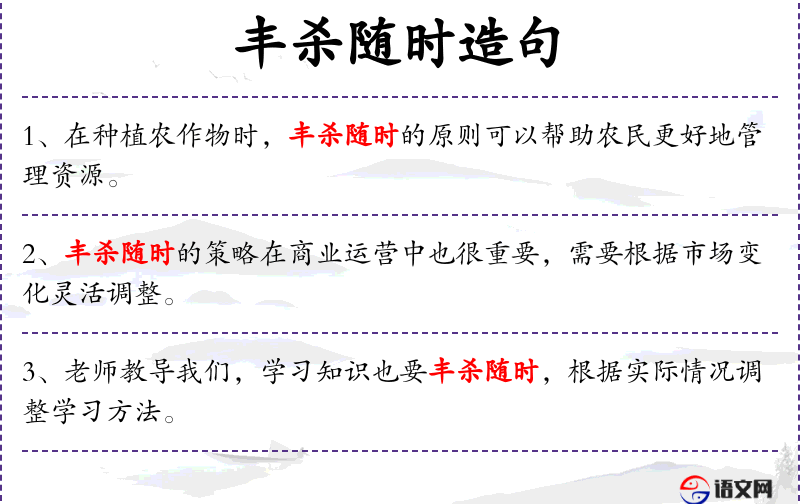 “丰杀随时”可能蕴含了**传统文化中“因时制宜”的思想,强调根据环境变化灵活调整策略。了解这一文化背景有助于更深入地理解句子的含义。