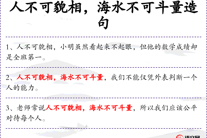 1. 【人不可貌相】 不能只根据相貌、外表判断一个人。