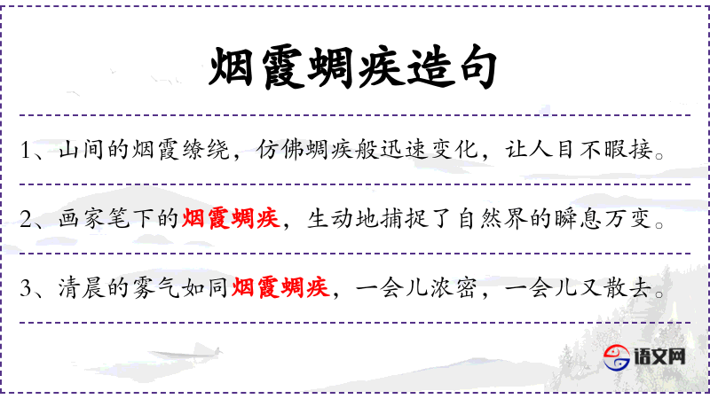 6. 【烟霞蜩疾】 烟霞:指山水;蜩疾:久治不愈的病,比喻积久成习,不易改变的嗜好、习惯。指爱好山水成癖。