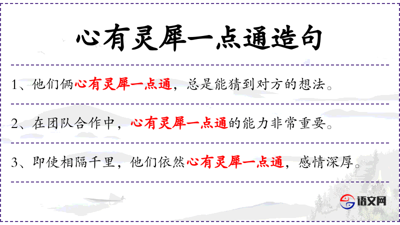 - 宾语:“心有灵犀一点通”