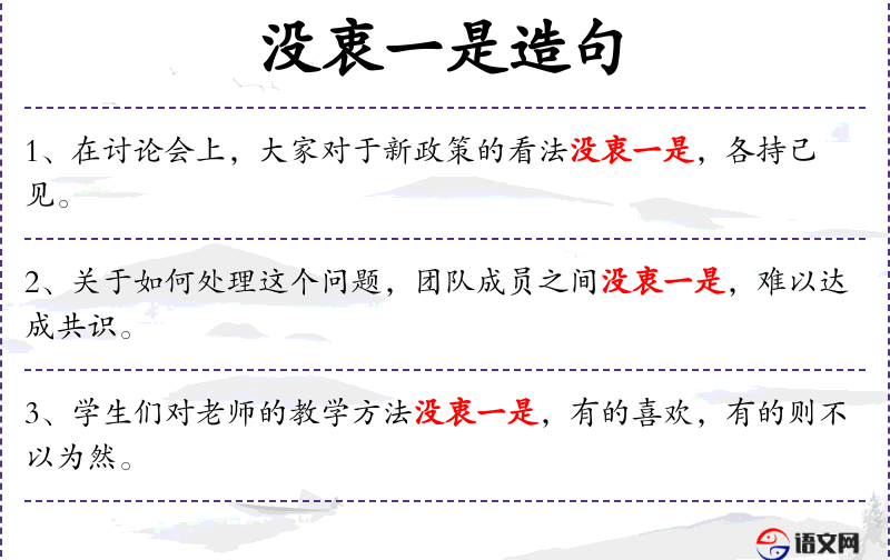 2. 【没衷一是】 - 衷:折中。指意见纷歧,不能决定哪一方面对。
