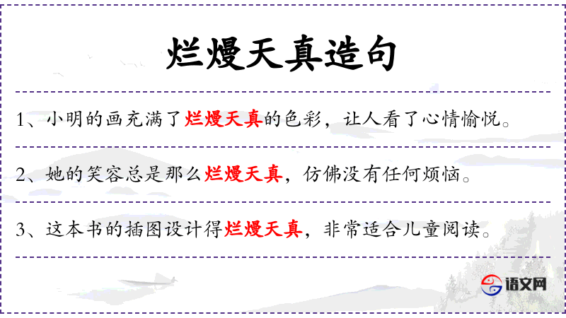 2. 【烂熳天真】 形容心地纯真,不虚伪做作。