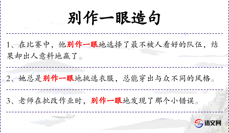 句子:“她别作一眼地选择了那个不太流行的音乐风格,结果赢得了许多粉丝。”