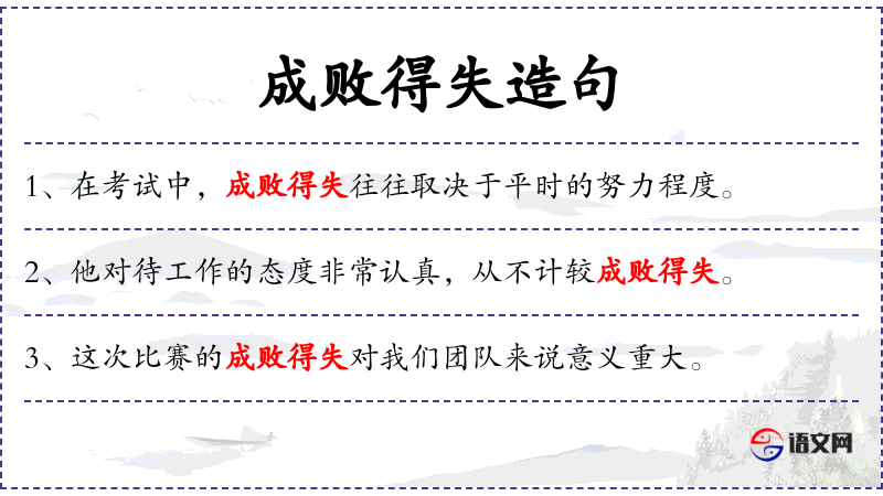 - 成败得失:指成功与失败,得到与失去。