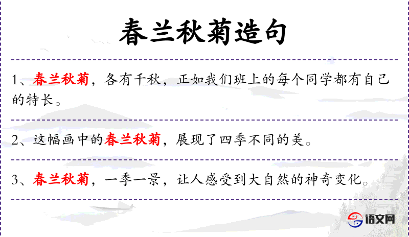 - 成语、典故:“春兰秋菊”常用来比喻不同时间的美。