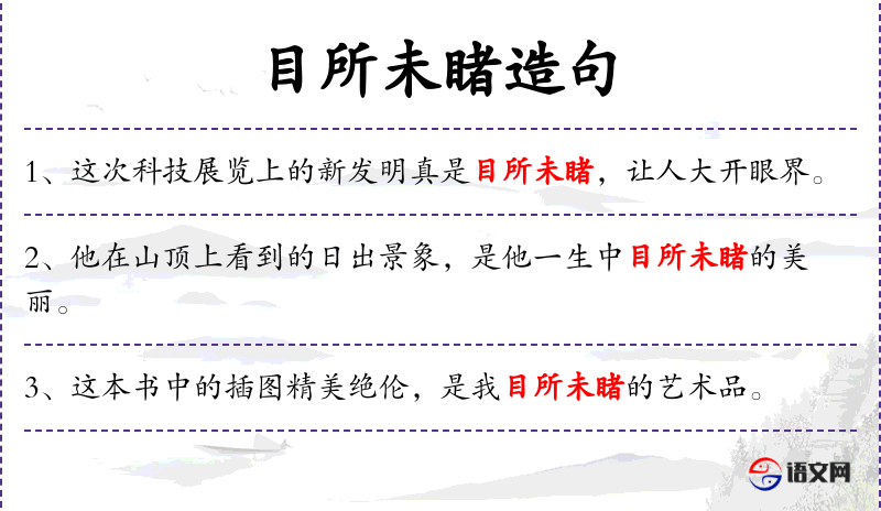 3. 【目所未睹】 - 睹:看。从来没有看见过。