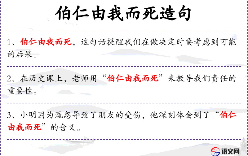 - 伯仁由我而死:成语,源自《左传·僖公二十五年》,意指因为自己的行为导致他人受害。