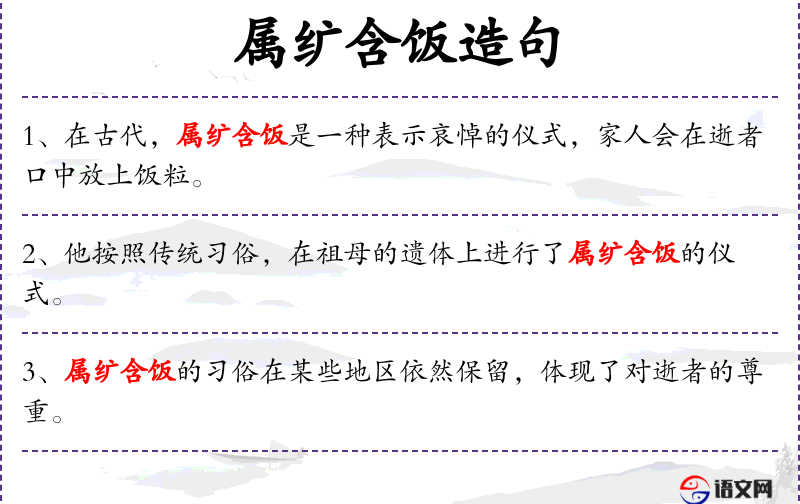 - “在某些地区,属纩含饭的*俗至今仍被保留,这反映了人们对逝者的敬意。”