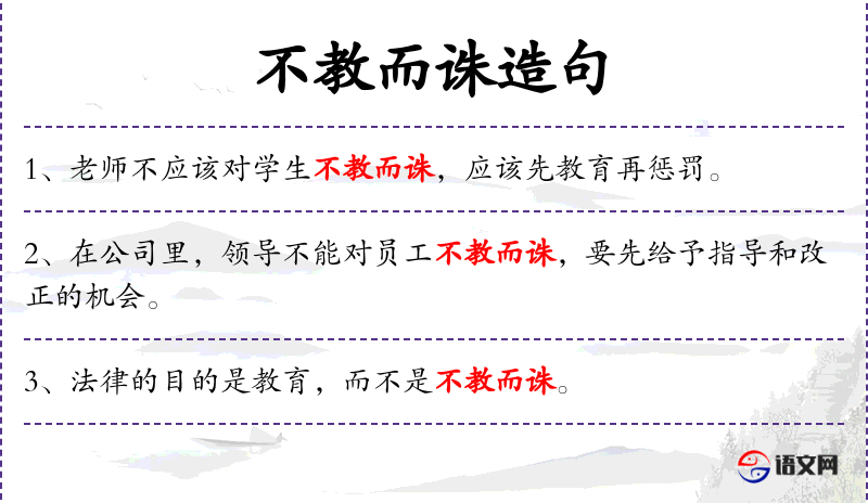 - 不教而诛:指不进行教育就直接惩罚,源自《论语》。