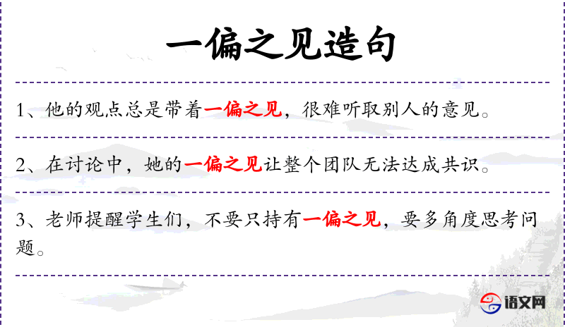 - 一偏之见:名词短语,表示片面或偏颇的观点。