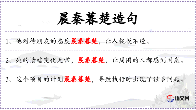 2. 【晨秦暮楚】 - 犹言朝秦暮楚。比喻反复无常。