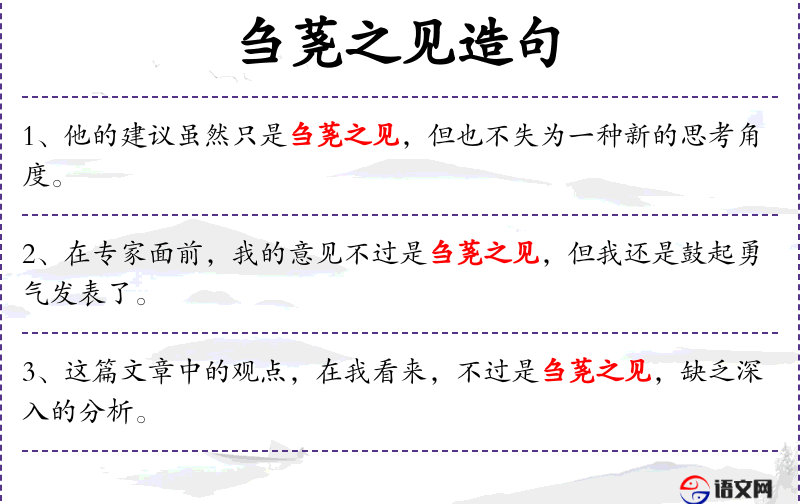 - 刍荛之见:成语,表示浅*或不成熟的意见。